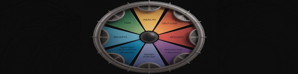 Cada página mostraba un área de la vida, un test y unas instrucciones. Sara empezó hacer ese test y vio al final del capítulo una rueda de colores, pintó cada resultado pero tenía una rueda que no parecía una rueda..