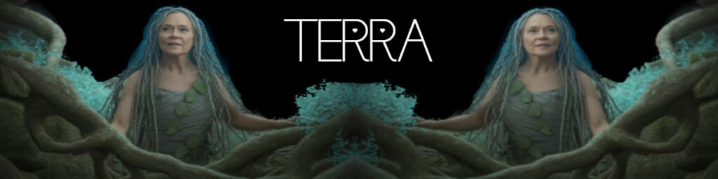 Terra surge entre raíces y rocas del bosque, firme y serena. Enseña al alma que sentirse segura en su propio terreno es el primer paso antes de avanzar hacia la puerta azul.